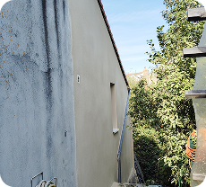 Enduit du pignon en gratté sur une maison jamais enduite.