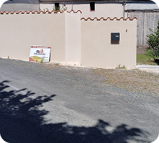 Montage du mur puis pose de tuiles sur le dessus de mur et pour finir application d’unenduit gratté couleur CASTRIE en finition.