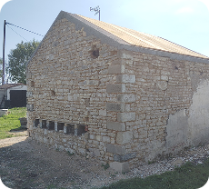 Modification d’une façade de grange en vielle pierre avec rehaussement agglos et maçonner en pierres naturelles par devant.