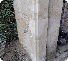 Réparation de pierres de taille avec un enduit spécial pour un rendu net et surtout une réparation discrète qui ne se voit même pas !